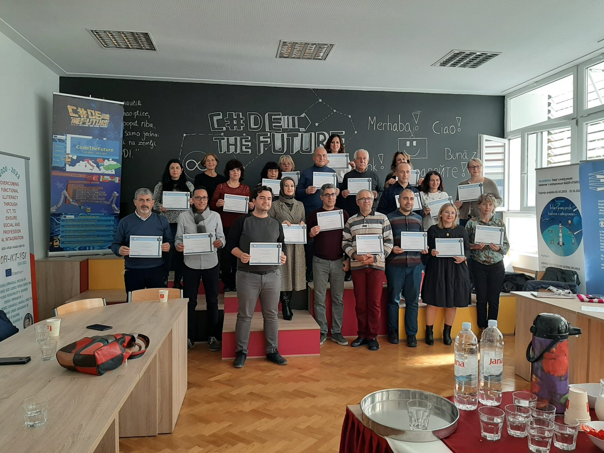 Anticipando le priorità del nuovo programma Erasmus+ 2021-2027, l’Istituto Tecnico Tecnologico “Malafarina” di Soverato, aveva già inteso con la programmazione del settennio precedente, approfondire le tematiche connesse all’innovazione digitale, tramite il progetto: “Code the Future” che è già valso all’Istituto il quality label internazionale etwinning. Dal 25 al 29 ottobre ottobre una delegazione coordinata dallo stesso dirigente Domenico Agazio Servello con la collaborazione della referente Erasmus dell’istituto, Savina Moniaci si è avvalsa del prezioso aiuto dei due esperti informatici Raffaele Vincenzo Micelotta e Claudio Cherubino per partecipare al secondo incontro transnazionale presso la Tehnička škola Nikole Tesle di Vukovar in Croazia. Dopo la presentazione delle slide riguardanti l’uso specifico di Arduino nelle attività curriculari raccolte da Boris Ivanković, e preparata in loco dal professor Franco Babbo, il team dell’istituto soveratese è stato impegnato in diversi training quali la programmazione e la codifica del linguaggio Morse con Arduino condotti da Miroslav Karan, la programmazione dell'orologio a LED in Arduino IDE, l’uso di ESP32 come web server tenuto da Sasa Ostojić, e l’adozione dei codici HTML e CSS per l'utilizzo del LED Clock promosso dalla coordinatrice croata Sanja Rašić. Nella splendida Università di Osijek, assieme alle altre delegazioni della Lütfi Ege Anadolu Lisesi, della Nezihe Derya Baltali Bilim ve Sanat Merkezi di Denizli in Turchia, della General Secondary School "Nikolay Katranov di Svishtov in Bulgaria, del Colegiul National Calistrat Hogas di Piatra-Neamt inRomania i partecipanti hanno avuto l’opportunità di seguire una lezione di tecnologia informatica del professor Robert Cupec della Facoltà di Ingegneria Elettronica ed Informatica.