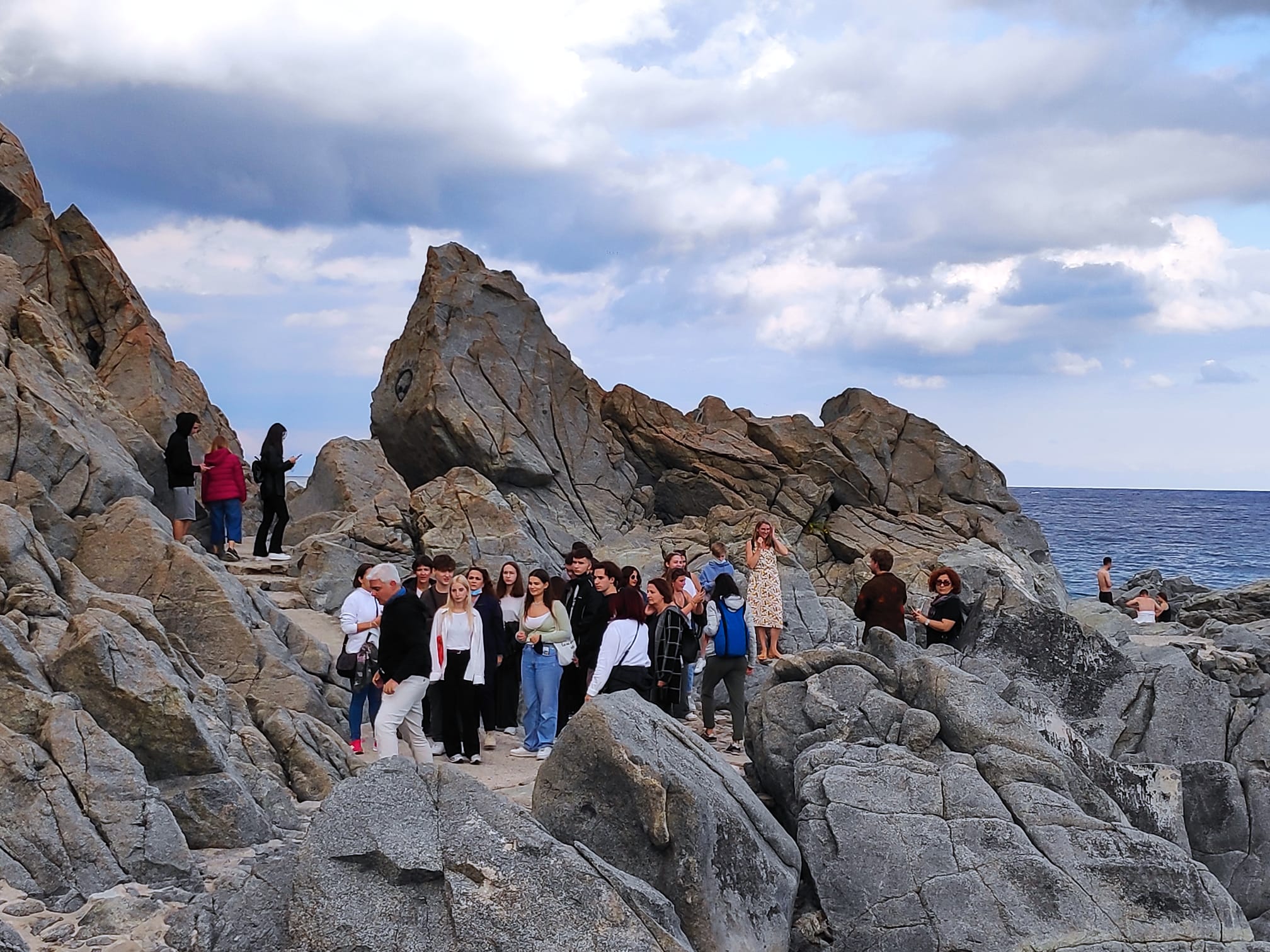 Allievi e insegnanti sono rimasti impressionati dalle meraviglie custodite dalla costa: visitare la località di Pietragrande e scoprire le innumerevoli curiosità che la caratterizzano è stata, per loro, un’esperienza magica, come testimoniano le miriadi di foto ricordo scattate a un passo dal mare.