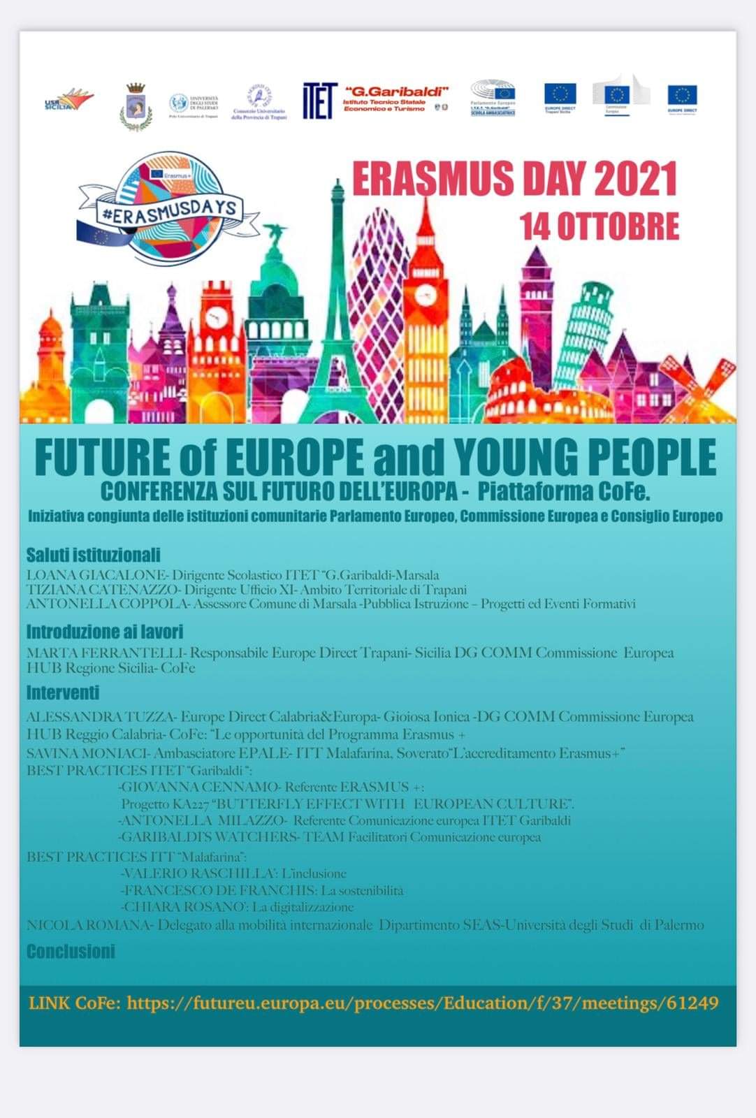 News della scuola Pubblicato: 13 Ottobre 2021 Visite: 361 Stampa Condividi Facebook Twitter Whatsapp Telegram Email Erasmus Day - 14 ottobre 2021 - Future of Europe and Young People