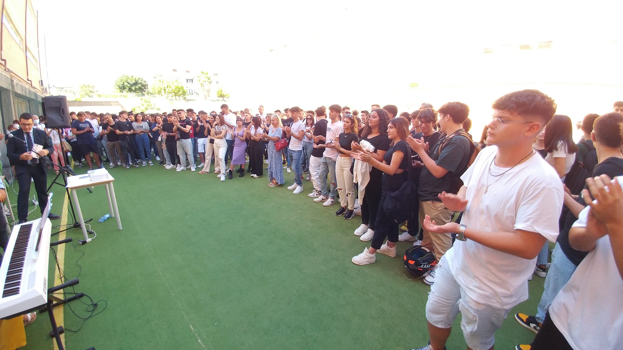 Dopo l'Inno di Mameli, il Dirigente Scolastico Saverio Candelieri ed il Sindaco della Città di Soverato Daniele Vacca, hanno voluto augurare a tutti gli studenti un buon anno scolastico.