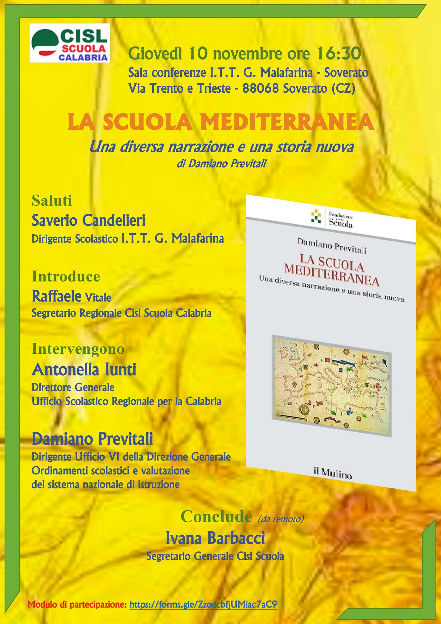 Giovedì' 10 novembre alle ore 16:30, nella Sala Conferenze del nostro Istituto, Damiano Previtali terrà un incontro per presentare il libro "La Scuola Mediterranea".
