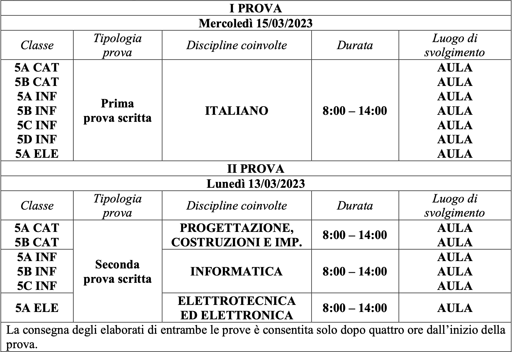 - Nelle date di svolgimento della simulazione della seconda prova gli alunni lasceranno l’Istituto subito dopo aver consegnato gli elaborati.