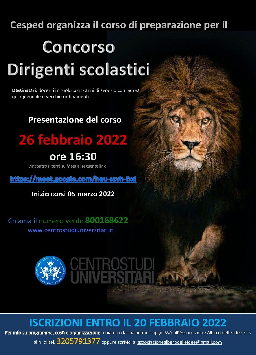 CESPED E ASSOCIAZIONE ALBERO DELLE IDEE ETS DI FIRENZE ORGANIZZANO IL CORSO DI PREPARAZIONE AL CONCORSO PER DIRIGENTE SCOLASTICO.